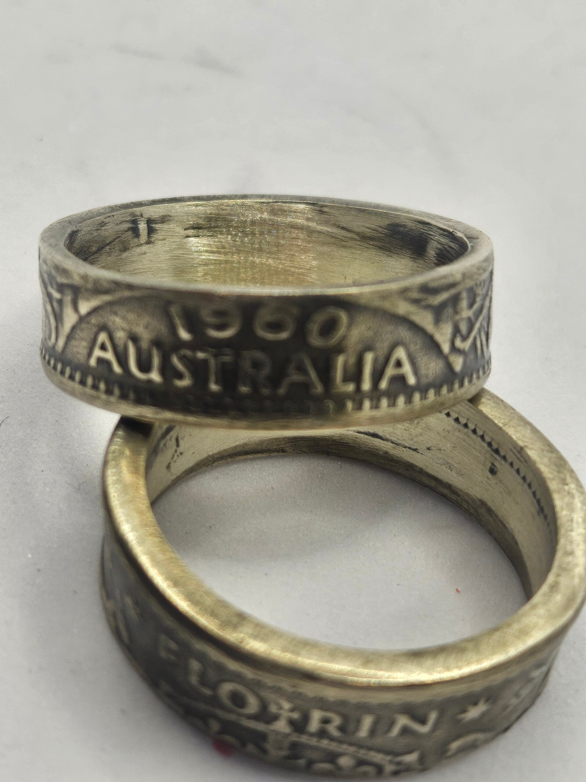 Australian Florin Coin Ring – Pre‑Decimal HeritageOwn a piece of Australian history reimagined. Each Australian Florin Ring is handcrafted from genuine pre‑decimal coins, transformed into a timeless piece of wearable art.Available in several sizes and original mint years, every ring tells its own story — from the silver gleam of its past life to the subtle patina that speaks of decades gone by. The design preserves the coin’s iconic details, making it a unique nod to Australia’s rich heritage and craftsmanship.Perfect for collectors, history lovers, or anyone looking to wear a truly one‑of‑a‑kind piece of Australian legacy.